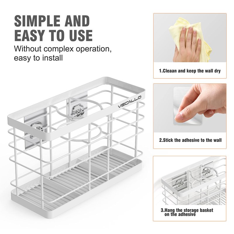 - 【Easy Installation】Bathroom organizer basket easily installs on bathroom or cabinet walls with the included Adhesive; Create additional storage space where you need it; Install inside a cabinet door for more discreet storage.