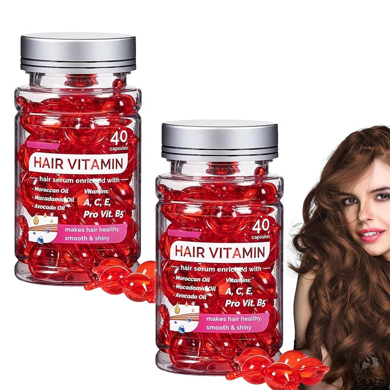 Hair Care Serum: Our hair vitamins treatment serum oils capsule contains 40 capsules enriched with moroccan, macadamia, and avocado oil, and various vitamins(vitamins A C E Pro B5) to support damaged hair repair.