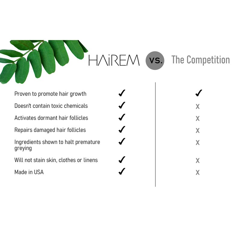 - ✔️HAiREM vs Minoxidil❌ Rigorous studies published in the National Institute of Health (NIH) confirm that botanicals contained in HAiREM , including Amla, Bhringraj, and Rosemary oil, outshine minoxidil products. Experience superior hair growth, thickness, and a halt to premature greying.