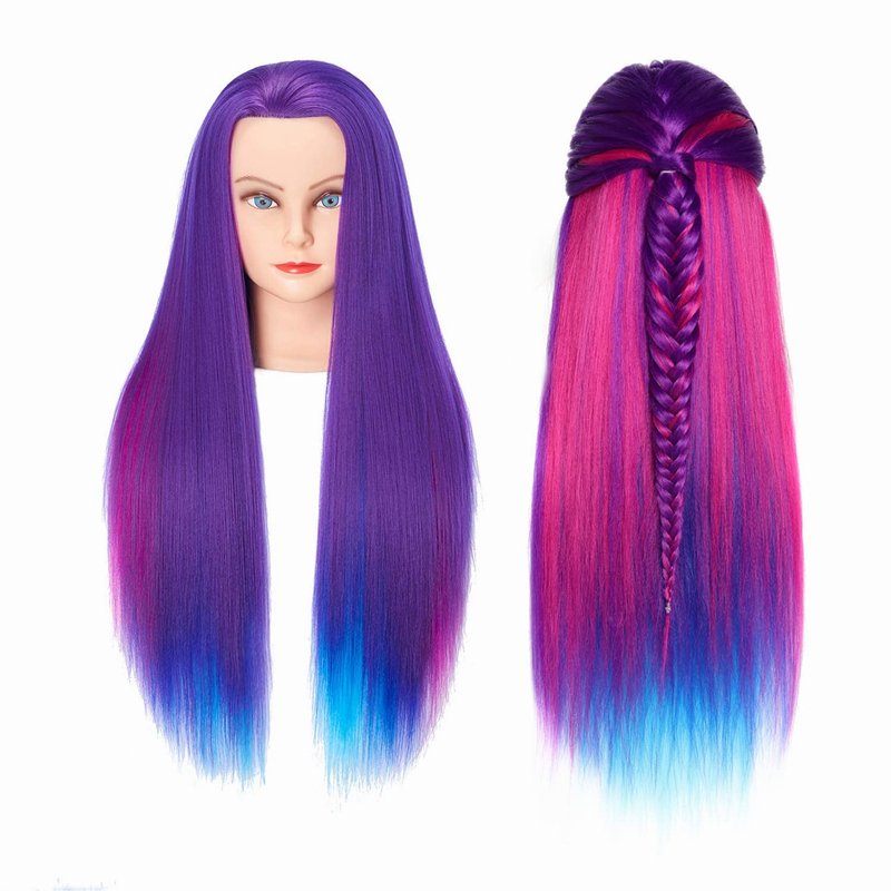 Hairginkgo Mannequin Head 26"-28" Super Long Synthetic Fiber Hair Manikin Head Styling Hairdresser Training Head Cosmetology Doll Head for Cutting Braiding Practice with Clamp (Colorful)