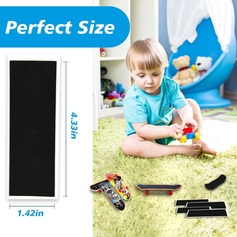 - 【PROPER SIZE】:Each finger skateboard tape is 110mm long,38mm wide, and 1.12mm thin, you can cut freely, suitable for most fingerboards.