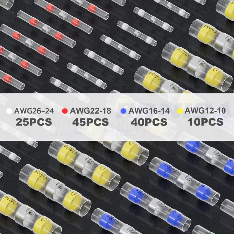 haisstronica 120PCS Solder Seal Wire Connectors,Marine Grade Heat Shrink Wire Connectors-Heat Shrink Butt Connectors-Butt Splice Wire Connectors for Stereo, Electrical with Corrosion and Weatherproof