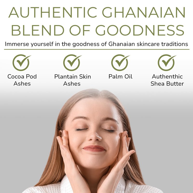 - Authentic Ghanaian Blend of Goodness - Immerse yourself in the goodness of Ghanaian skincare traditions. Our raw shea butter African soap bar combines cocoa pod ashes, plantain skins ashes, palm oil, and unrefined shea butter for an authentic, effective formula.