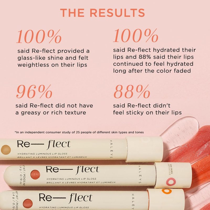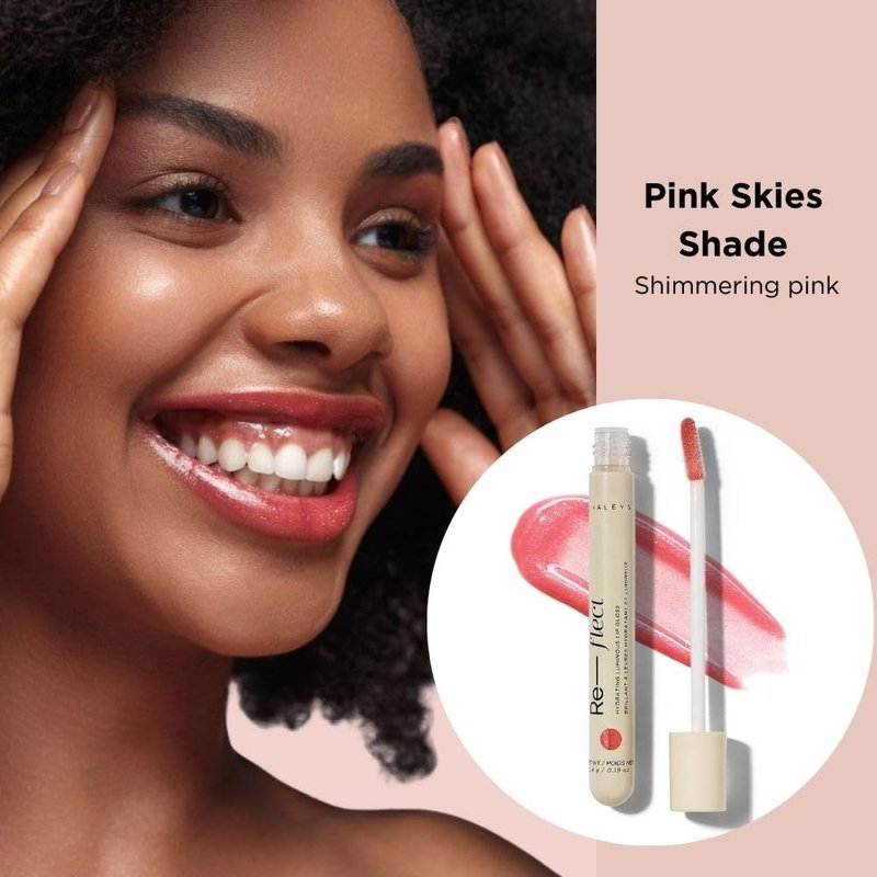 HALEYS Hydrating Luminous Lip Gloss (Pink Skies), Re-flect and hydrate, nourish, non-sticky, weightless, Phenoxyethanol-free, peppermint oil-infused, Vegan and Cruelty-free