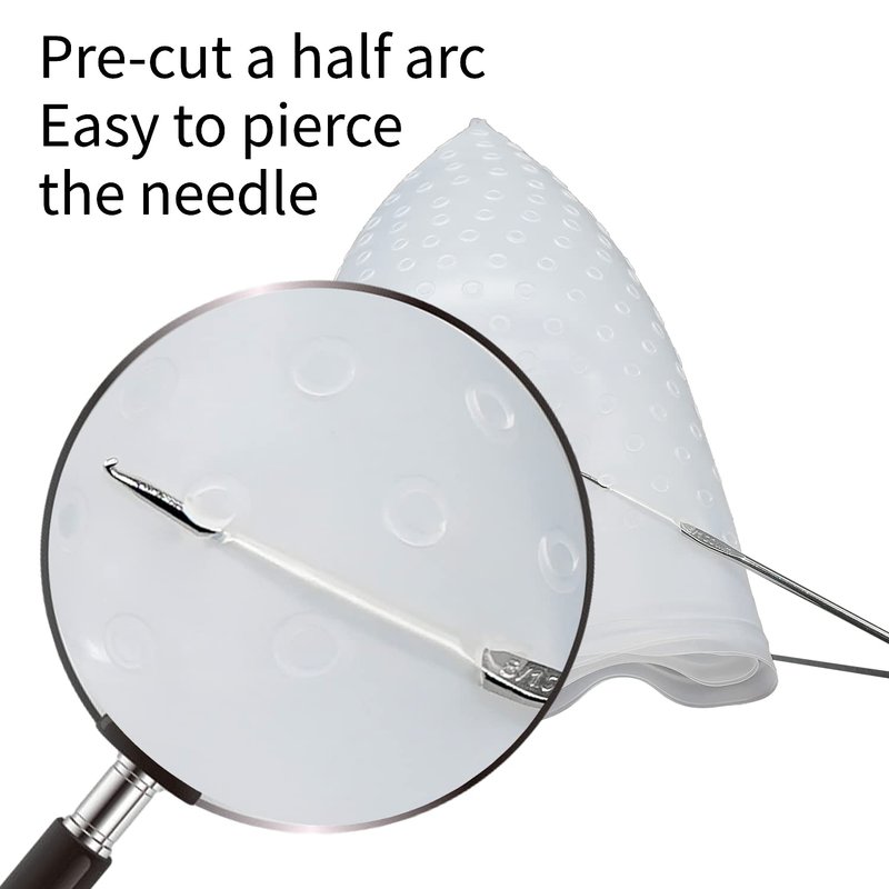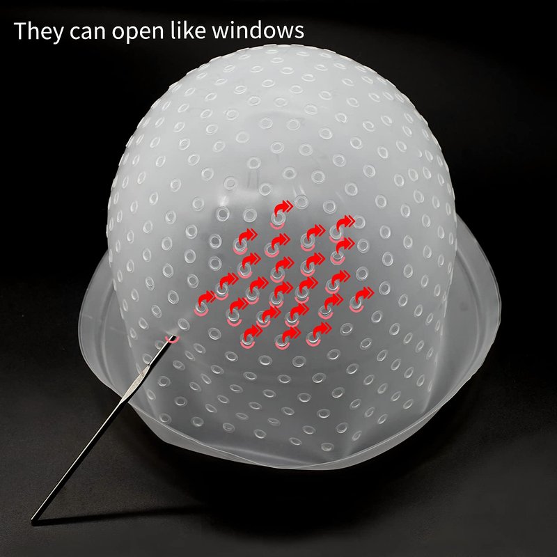 - PRE PIERCED HALF HOLES:Hair dye cap with holes,the holes design like half circle,you needn't waste time to pierce holes before using,it is easy to use for dyeing your hair.As this upgraded version of the design,you can dye your hair freely without worrying about leakage of the dye.With a metal hook,your hair will quickly pass through the holes without any pain,easy for use and beauty your hair