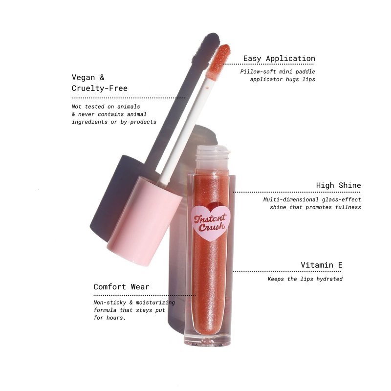 Fuller, hydrated lips in a tube. Our Instant Crush lip gloss will give you the extreme shine you're craving. Formulated with nourishing ingredients like vitamin E and jojoba oil, our lip gloss not only provides a stunning glossy finish but also keeps your lips hydrated and smooth throughout the day. Crafted with precision and passion, our lip gloss is available in a mesmerizing array of 11 shades, ensuring there's a hue for every mood and occasion. From subtle tints to dazzling shimmers, Half Caked has curated a collection that caters to all your lip color desires.