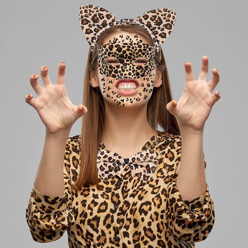 - The product set include: 1 piece of leopard print cat ears headband with leopard print masquerade mask, 1 piece of long tail.Match your different needs for daily wearing and party cosplay costumes decoration.