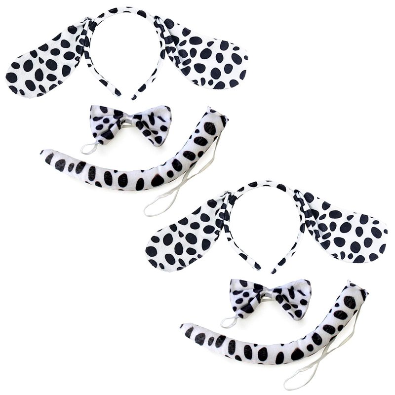 - 【HIGH QUALITY】 Made of high quality eco-friendly duarable smooth plastic and cloth with unique style, more safe and will not hurt your health. Color: white with black, package: headband*2 + bow tie*2 + tail*2. Just show your love for the dalmatian, will let you more lovely and attractive
