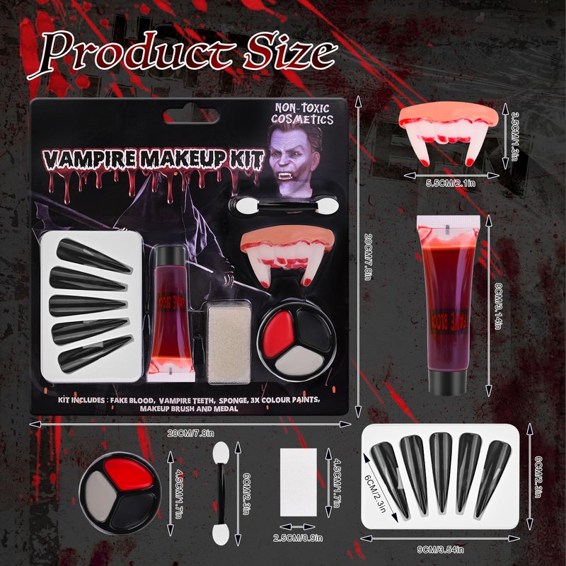 - ☆ Cruelty-Free, Vegan: We're so confident about the quality of our fake blood makeup kit, We take care of the skin with professional quality, this formula is moisturizing, semi-soft, safe and gentle. Suitable for all skin types and will not cause irritation.