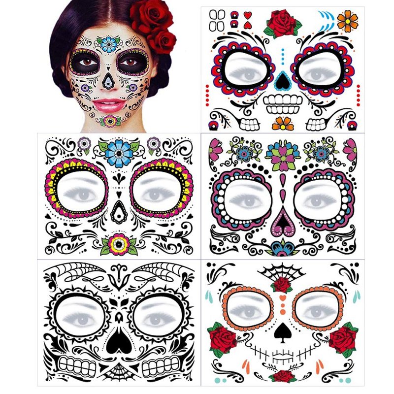- Package Includes: 5 sheets of different premium sugar skull face tattoos all in one package.
