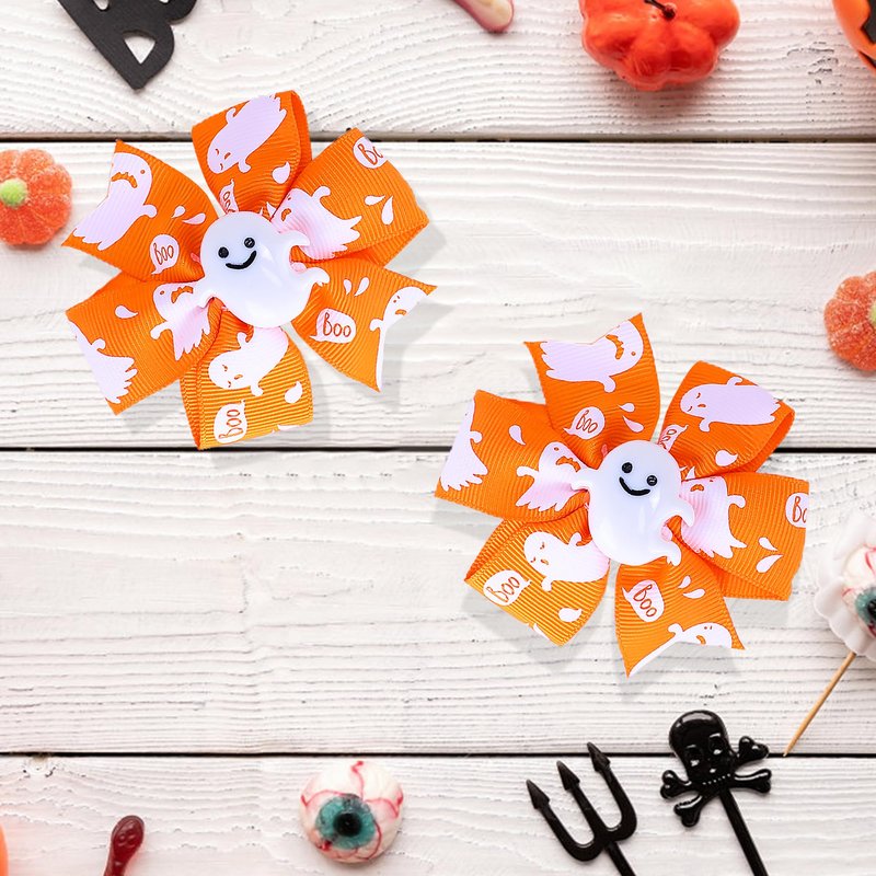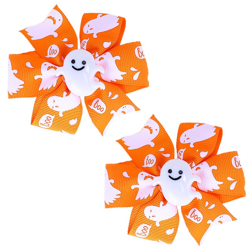 Halloween Hair Bows Clips, 2 pcs Ghost Hair Clips for Girls Kids Teens Orange Grosgrain Ribbon Bow Non-slip Alligator Clip Hair Accessory for Halloween Costume Party Spooky Season