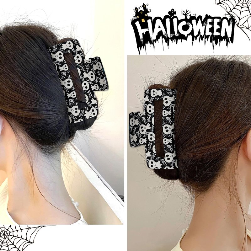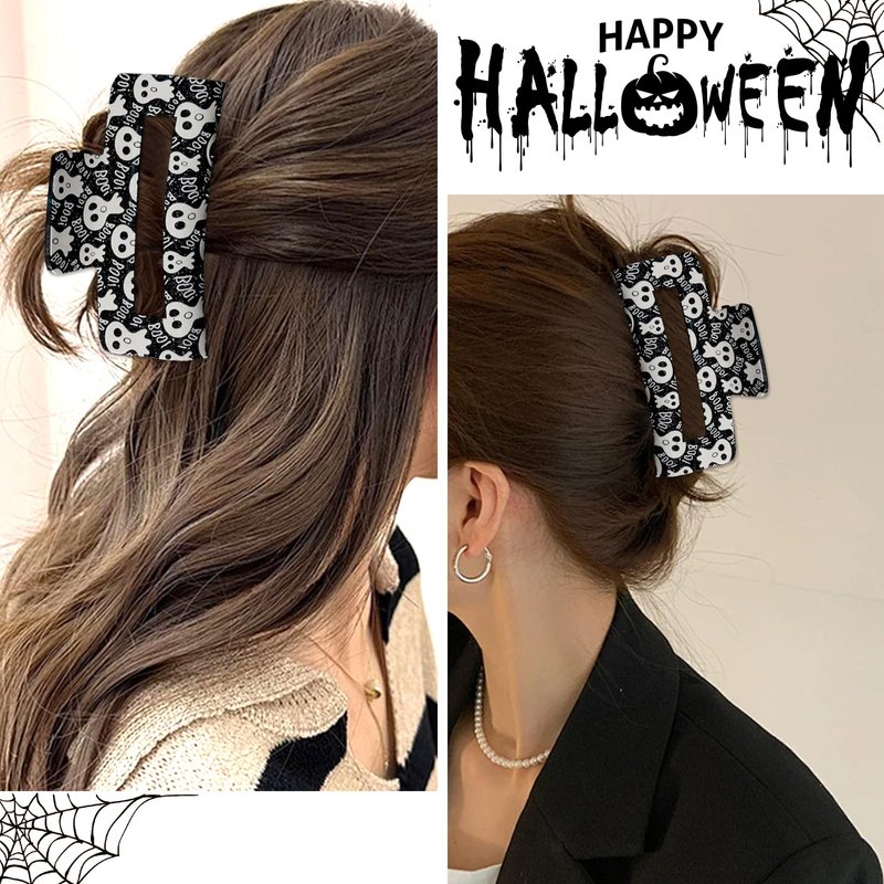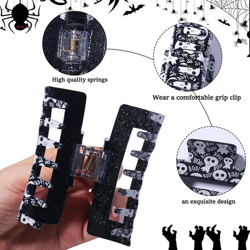 Halloween Hair Clips for Women Girls Black Claw Clip Skull Pattern Hair Claw Clips Non-Slip Hair Clamps Cute Halloween Hair Accessories Halloween Party 1PCS