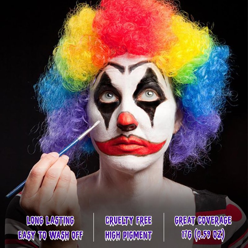 - ๐Pro Halloween Oil Based 3-Color Face Body Paint: Our clown wheel face paint is Waterproof oil-based formula and good for full coverage body paint, easy blending and layering. Transparent setting powder is highly recommend to make it dry quickly,not easy transferring.