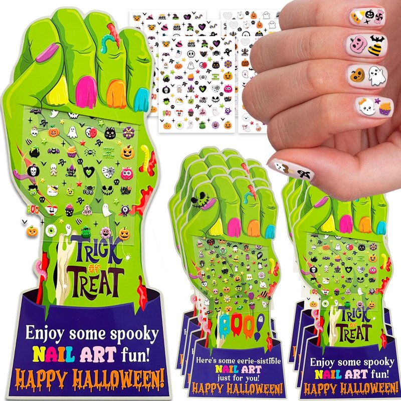 - 👻 Perfect Party Favors & Prizes for Girls: Whether it’s a Halloween party, prize, or a fun gift for friends, these zombie hand cards are a hit! Each pack has 9 zombie hand cards (8.8 x 4.3 inches) and 9 nail sticker sheets (3.5 x 2.8 inches), with around 93 adorable and spooky stickers per sheet.