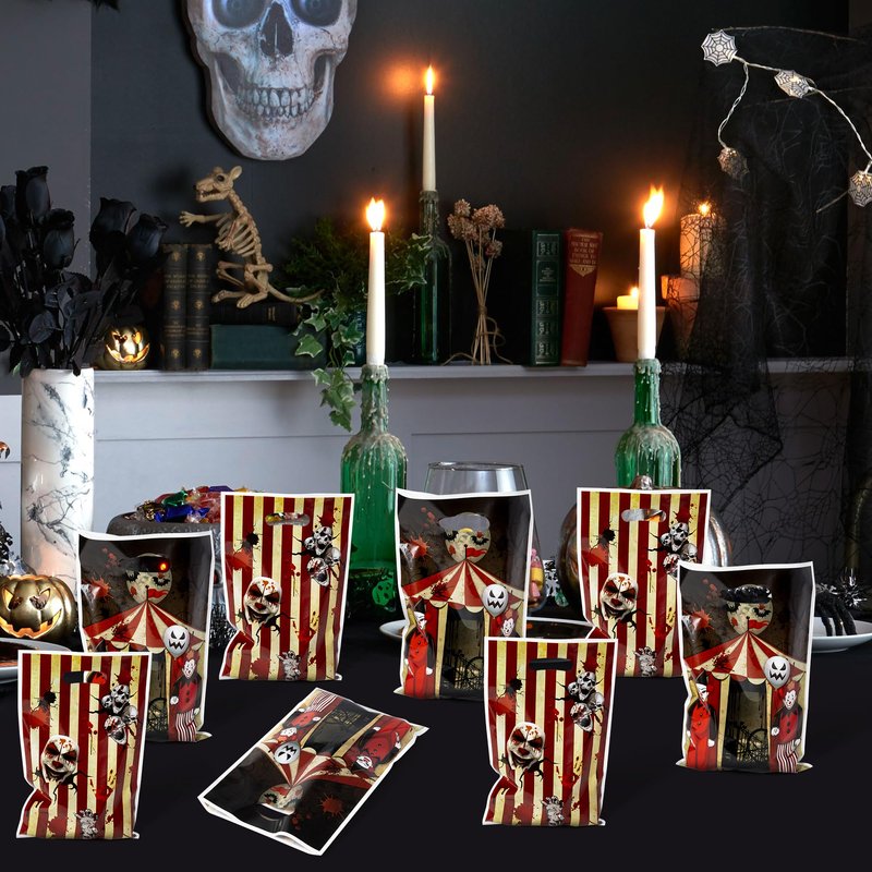 - RELIABLE PLASTIC: Our Halloween circus themed gift bags are made of reliable quality PE, sturdy, reliable and reusable, with a smooth surface that won't cut children's hands. The gift bags are also designed with hollowed out carrying handles for easy carrying. In addition, you can also fold them to store them for your next party.