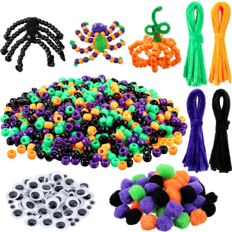 Halloween pony beads plastic beads craft beads pipe cleaners chenille stems pompoms and wiggle eyes for Halloween craft and art DIY decoration