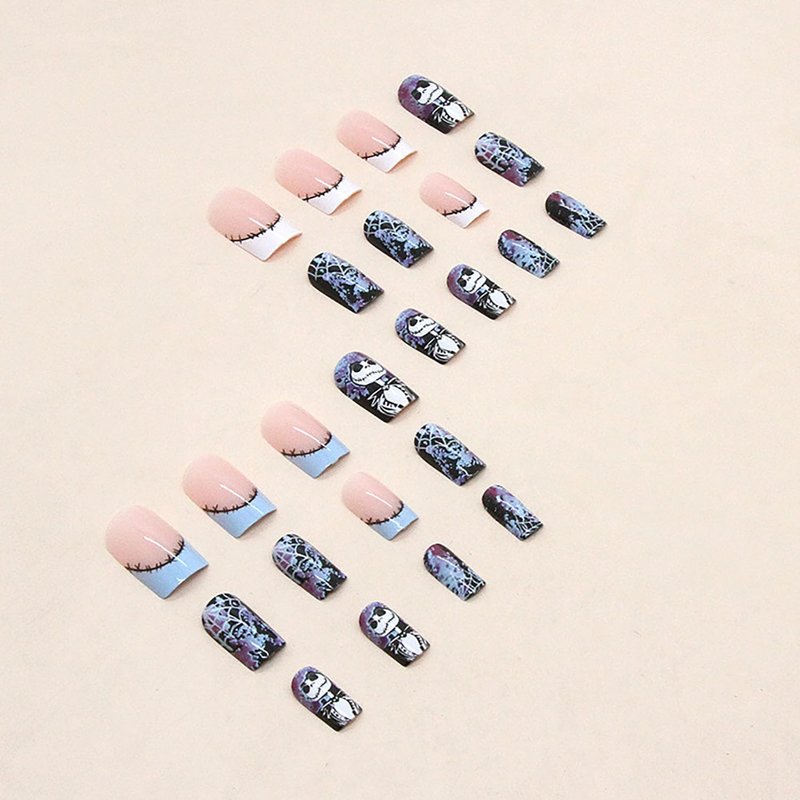- 【Package Includes】 24 pieces halloween fake nails, 1 sheet of 24 pieces jelly glue, 1 piece of mini nail file, 1 piece of wooden stick and 1 piece alcohol pads.