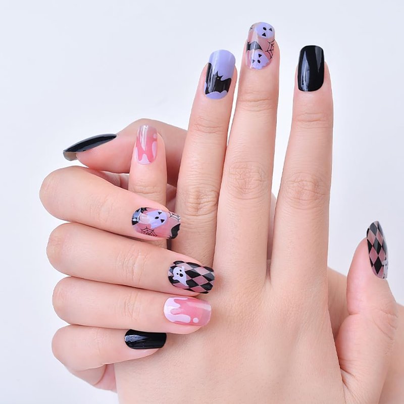 - Halloween Gel Nail Strips: Ghost semi cured gel nail strip is made from real gel nail polish ingredients, not plastic material. It is softer and more flattering to nails than regular stickers.