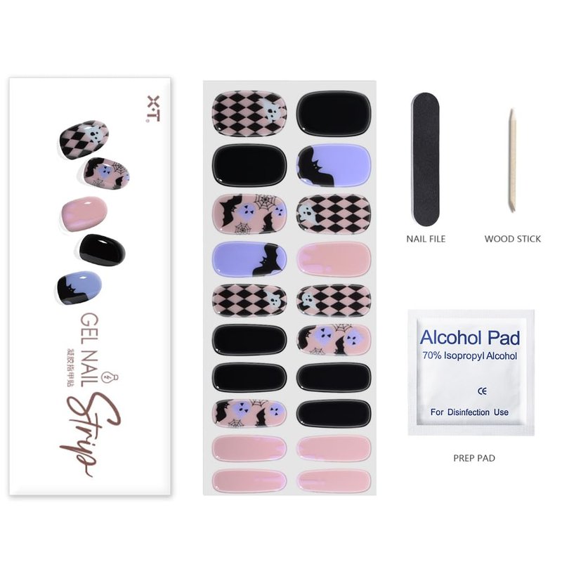 - Semi Cured Gel Nail Strips: You will receive 20pcs of Halloween gel nail stickers in 10 different sizes, a nail file, a wooden stick, and two prep pads!