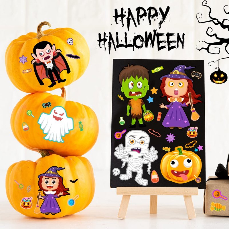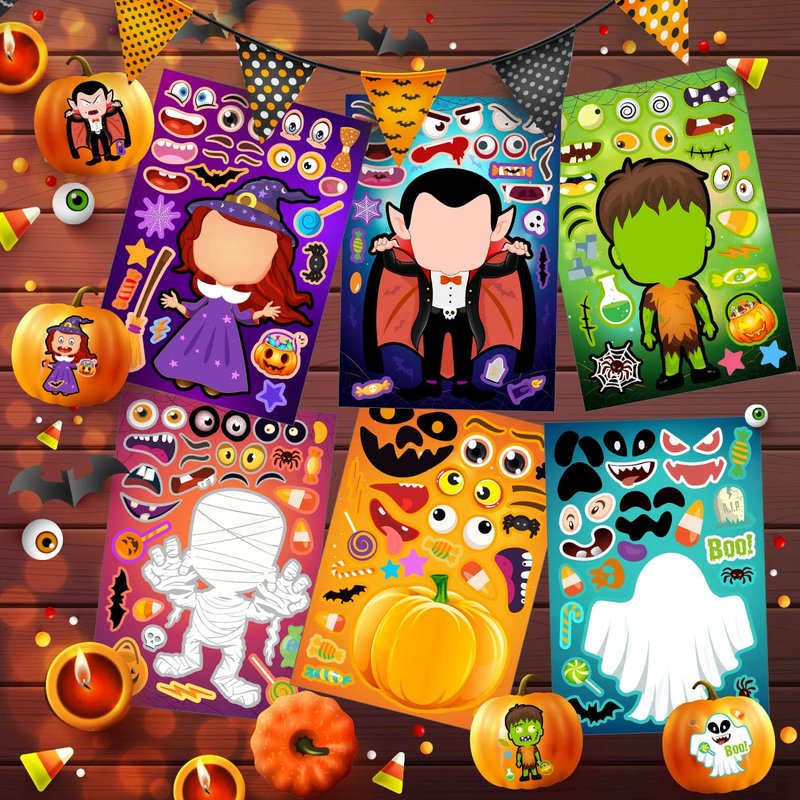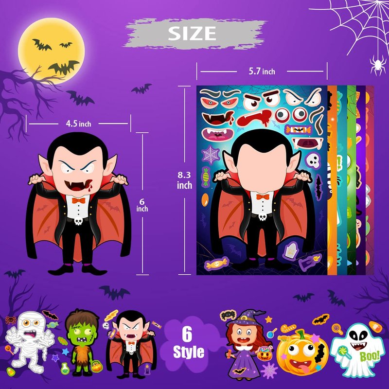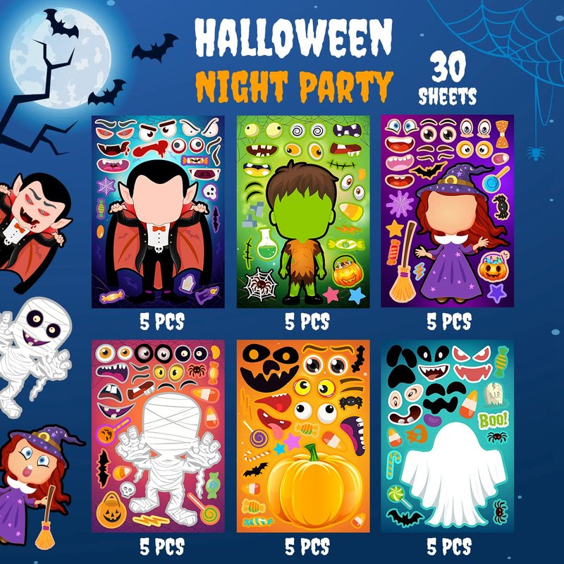 - 🌟【VALUE PACK】30 sheets 8.3"x 5.7" Halloween theme mix and match make your own face stickers, Halloween face stickers have 6 styles, 5 sheets of each style. each sheet has different designs of eyes, mouths and eyebrows to make whatever faces you like, Great for halloween party games.