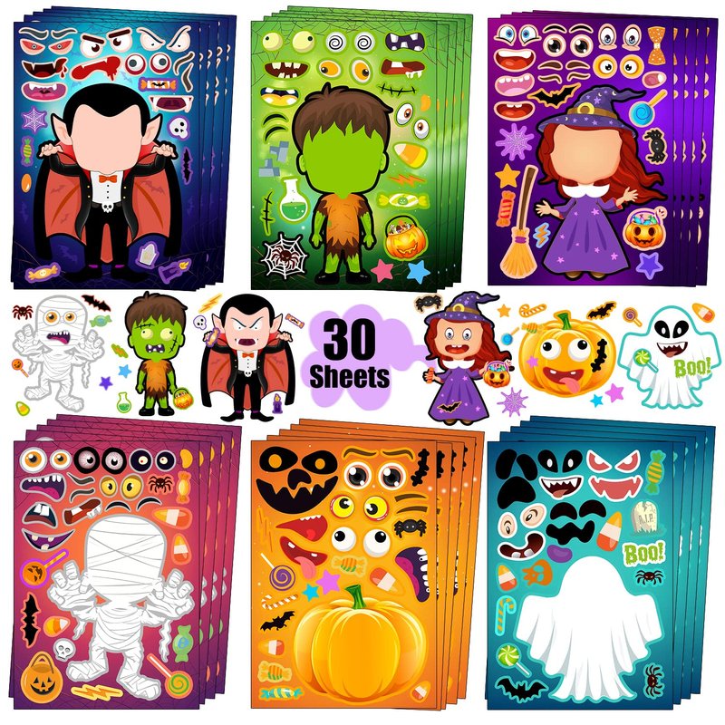 Halloween Stickers, Halloween Stickers for Kids, 30 Packs Halloween Make a Face Sticker Sheets, Halloween Crafts Party Favors for Kids, Halloween Games for Kids Party