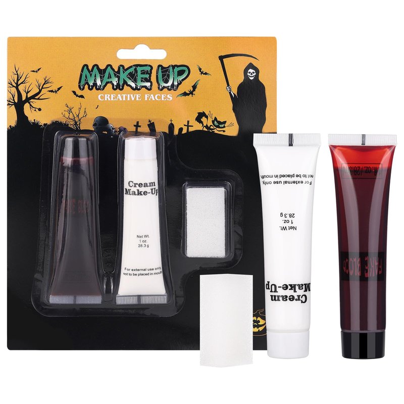 Halloween Vampire Makeup Kit with White Face & Body Paint, Fake Blood and Applicator SFX Makeup Set for Zombie Wounds Clown Cosplay Special Effects Makeup