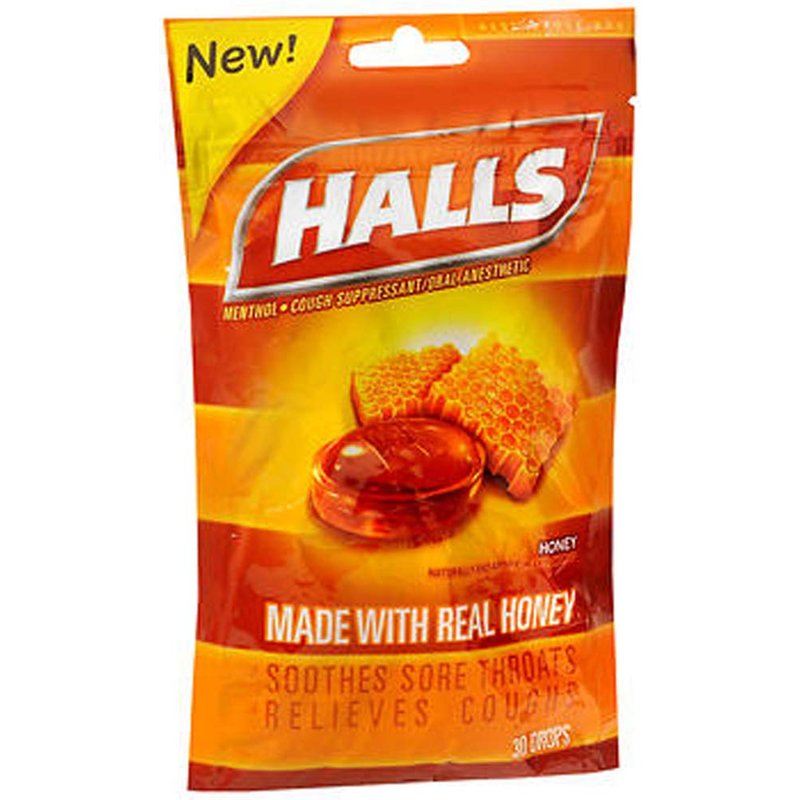 Halls Cough Suppressant/Oral Anesthetic Drops Honey - 30 ct, Pack of 3