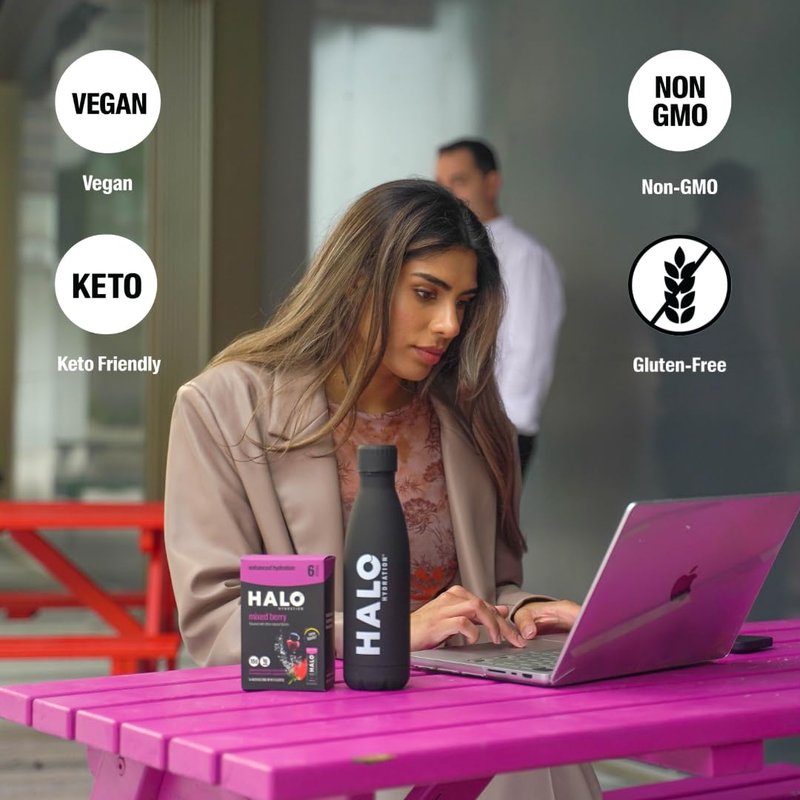 HALO is inspired by exasperation with having to compromise taste and/or functionality and was created by some of the nation's top health and wellness professionals. Introducing our HALO Hydration Sticks, HALO’s breakthrough hydration blend of electrolytes, minerals and vitamins is now in easy-to-mix low calorie powder packets! HALO is the only electrolyte powder drink with over 100 mg of natural magnesium. Plus, it contains nothing but quality ingredients for you: naturally sourced electrolytes, 72 ionic trace minerals, and vitamins A, C and E. Complete hydration. Only 15 calories per stick! Light on Calories, Big on Taste. Replenish those electrolytes with HALO’s extra hydrating properties and a deliciously crisp and refreshing taste. You don’t need excessive calories while quenching your thirst. Like most beverages, HALO is best enjoyed cold. So, add some ice cubes after mixing. The powder may settle if left for a while so make sure to shake or stir before you sip. Fits Perfectly into Your Active Lifestyle. HALO is always all natural, vegan, kosher, and non-GMO. It also contains zero dairy, soy, or gluten. Most of all, it has no artificial flavors, preservatives, flavoring or synthetic coloring.