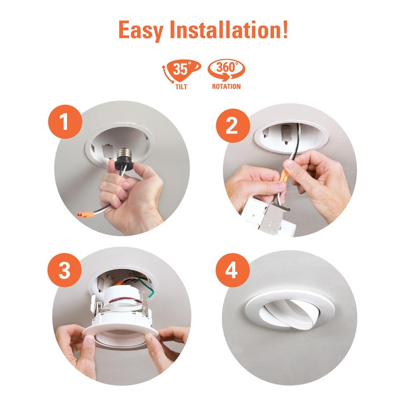 - ILLUMINATE ANY ROOM: 615 Lumens and a Bright White 3000 Kelvin color temperature. This gimbal tilts 35 degress and has up to 360 degree rotation. The optical design creates a diffuse wide beam for even illumination. 90 CRI.