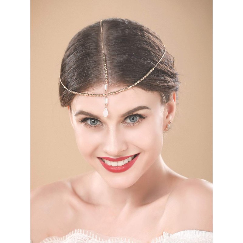 - Gold headchain total length approx 17.72inches, one size fits most people; You can adjust the length to suit your hairstyle; Fits anyone head and easy to put on.