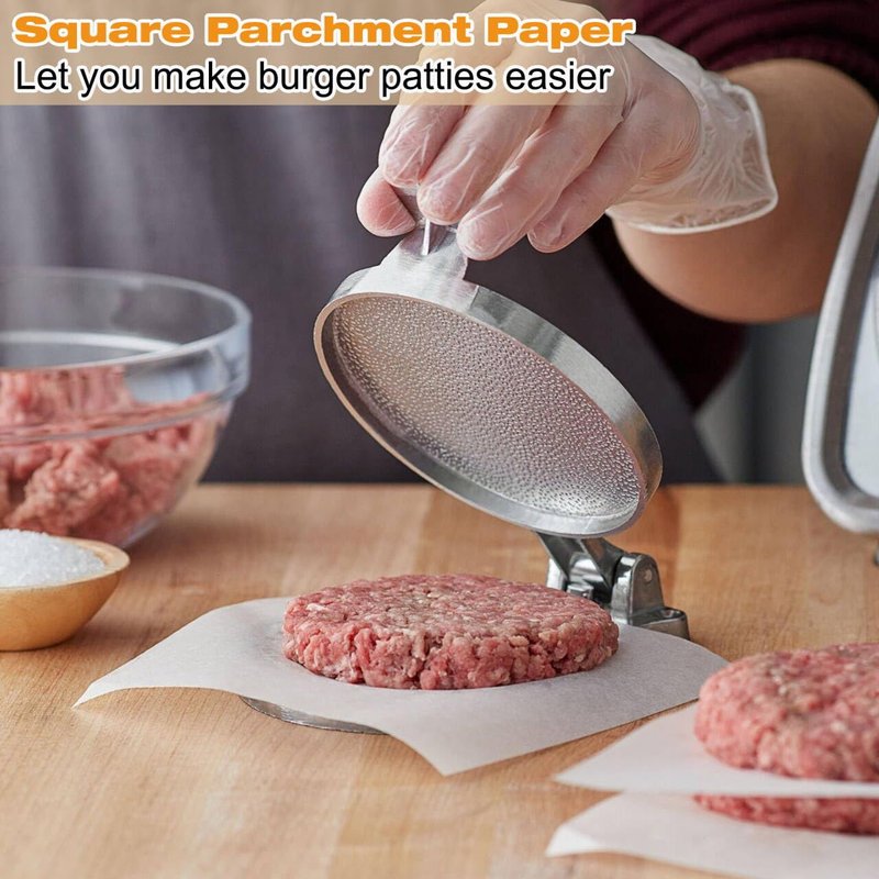 - Non-stick & Greaseproof: Our parchment paper has grease and moisture resistant properties that won't tear, rip, or soak through. Great for separating burgers after using a press, preventing sticking and retaining shape, keep food fresh.