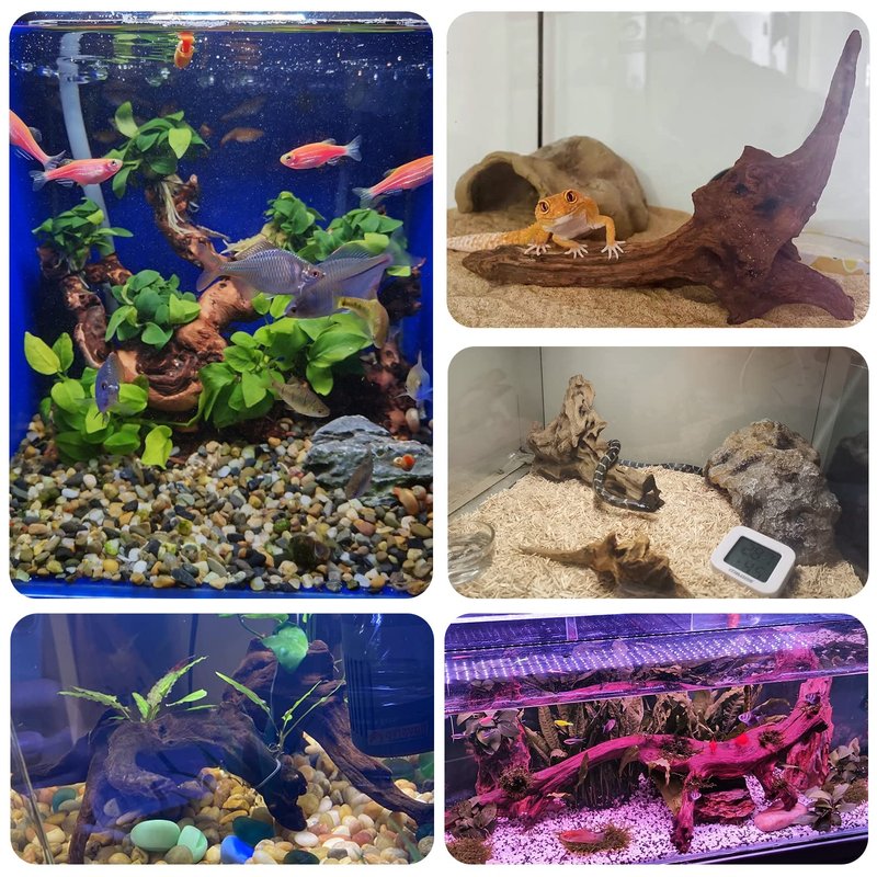 - [100% Natural Wood] The large reptile driftwood decoration is made of natural coral wood and contains no chemicals.It is safe for all pets.Reptiles, lizards, snakes, shrimp, fry, all like driftwood.Each piece of terrarium driftwood has an interesting shape and texture.Natural coral driftwood can make your aquarium look more alive.