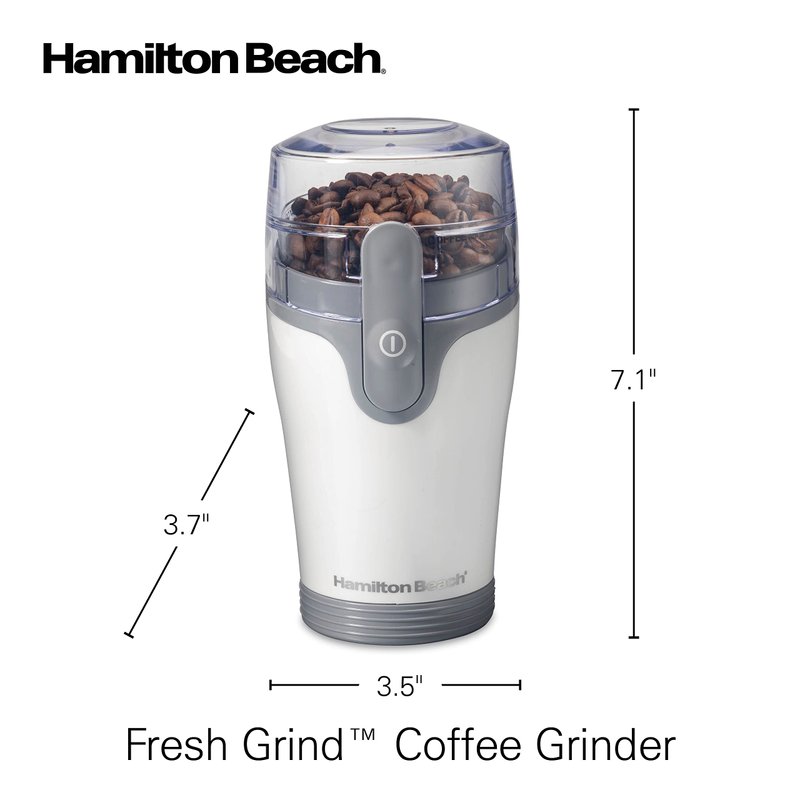 Hamilton Beach Fresh Grind Electric Coffee Grinder for Beans, Spices and More, Stainless Steel Blades, Removable Chamber, Makes up to 12 Cups, White