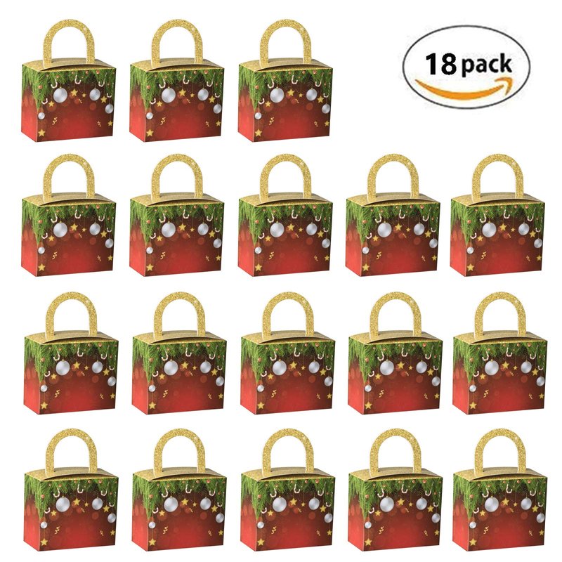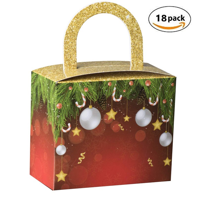 Hammont Christmas Candy Boxes - 18 Pack - Colorful Party Favor Treat Boxes with Sturdy Handle – Perfect for Wedding Favors, Parties and Celebrations | 4.5” x 3.75” x 2.25”