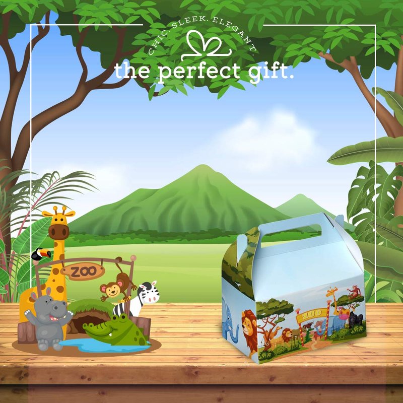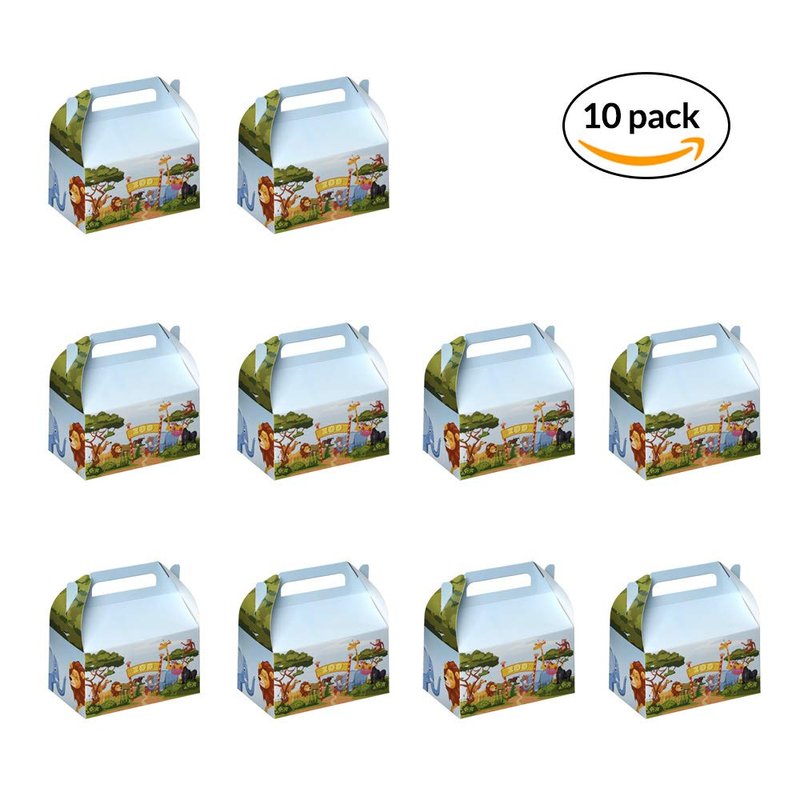 Hammont Paper Treat Boxes - (10 Pack) - Party Favors Treat Container Cookie Boxes Cute Designs Perfect for Parties and Celebrations 6.25" x 3.75" x 3.5" (Zoo)
