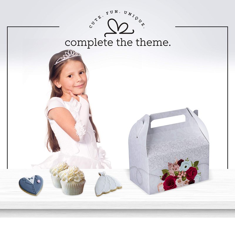 Hammont Paper Treat Boxes - Party Favors Treat Container Cookie Boxes Cute Designs Perfect for Parties and Celebrations 6.25" x 3.75" x 3.5" (10 Pack) (Bridal)
