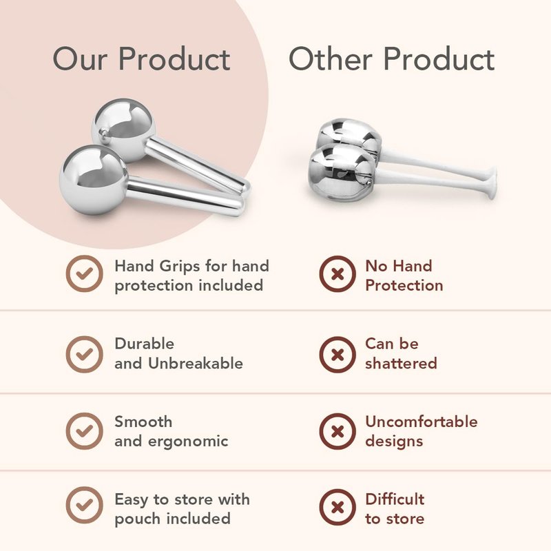 Hana Emi Ice Globes for Face - Unbreakable Ice Roller for Face and Eyes - Cryo Globes for Facials Anti-Age - Anti-Wrinkle Face Globes - Masajeador Facial - Set of 2, Silver