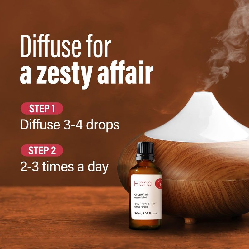 - DIFFUSE TO CALM AND UPLIFT. Grapefruit oil essential has a wonderfully clarifying aroma. Diffuse 4-5 drops of grapefruit diffuser oil for 30 mins to revitalize a space