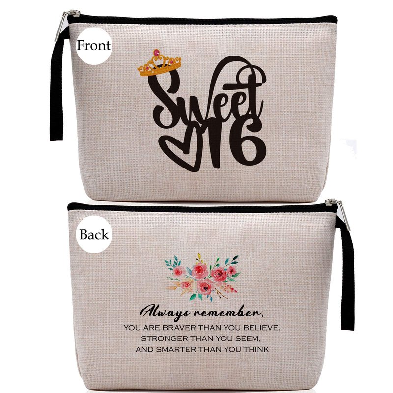 Hanamiya Na Sweet 16 Gifts for Girls, Makeup Bag-16th Birthday Sweet Sixteen -16 Years Old Girl Birthday Gift, Cosmetic Pouch, Travel Case, Makeup bag for Girls