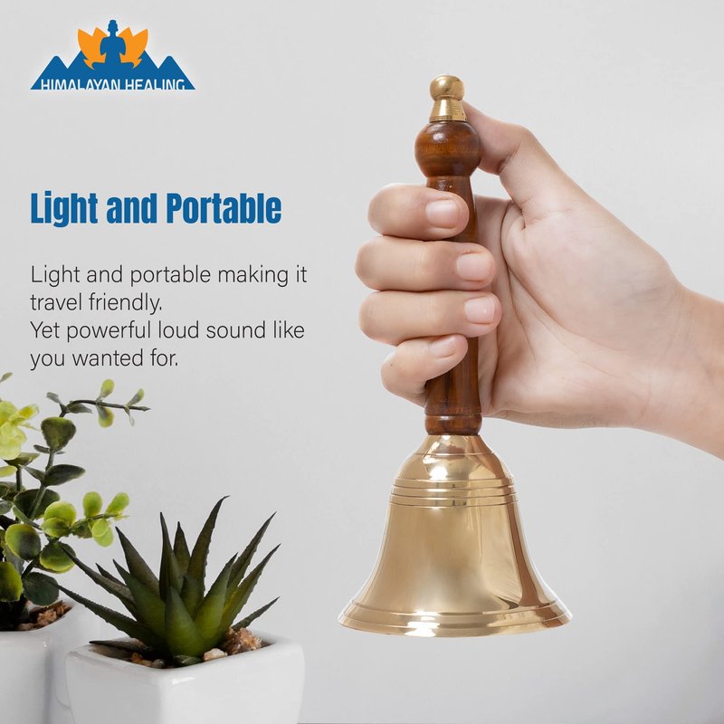 Brass Hand Bells Light and Portable: A traditional yet contemporary design, These simple brass bells are a classic addition to your room. Unlike other metal bells, these bells create a sweet yet clear sound that easily echoes even in spacious rooms or halls. They are light in weight and portable making it travel friendly. Uplight your Spirit : Commonly used as a worship bell in most parts of Asia. The sound of the bell is considered auspicious which welcomes divinity and dispels evil. Mental health Benefits : The vibrations from these brass bells also helps the mind to disengage from ongoing thoughts thus making the mind more receptive. It is scientifically proven that the sound of the bell unites our left and right brain. This synchronization improves confidence and keeps one alert at all times. Premium Quality: Made of high-quality silver steel. It is non-toxic and odorless, hefty and durable, rust-resistant and colorfast.These Handbells stand out in the crowd. Wider Applications: These bells can have multiple purposes as well. Can be used for training pets, waking families up or signaling to students, caregivers can use in retirement homes, patients can use it in hospitals & nursing homes.