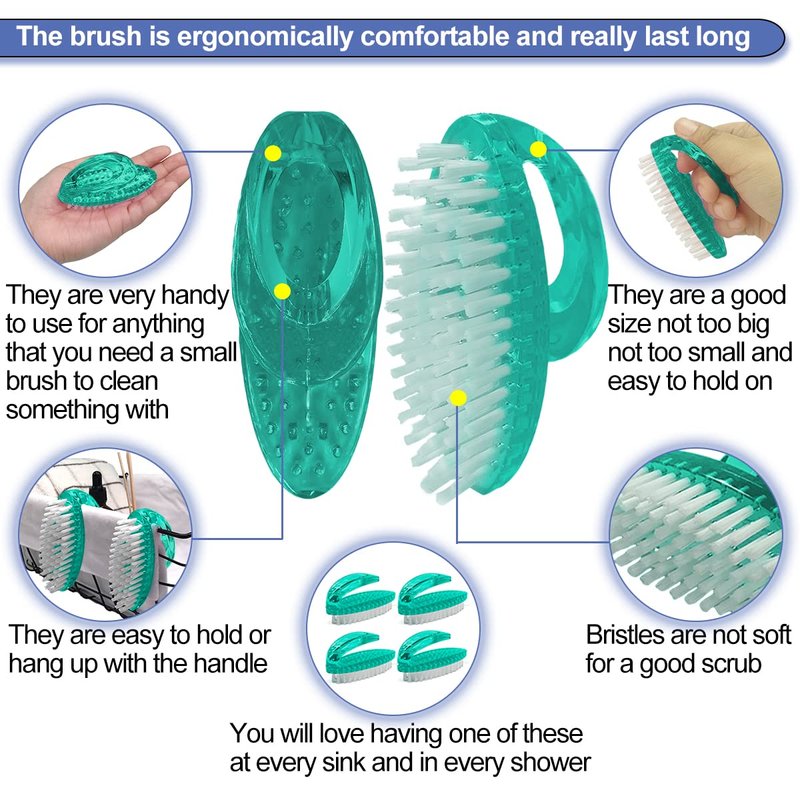 - VALUE PACK - This set includes 4 hand brushes in sprout green. Each brush measures 3.75'' x 1.45'' x 2'', making them the perfect size—not too big, not too small. They’re easy to hold and convenient for travel. These small hand scrub brushes are larger than average nail brushes, making them ideal for cleaning hands and nails as well as vegetables under running water. Additionally, they’re great for scrubbing laundry items before washing.