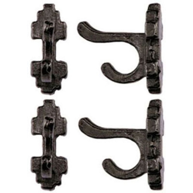 - Dollhouse miniature set of 4 wall mount coat hooks in a pewter finish.