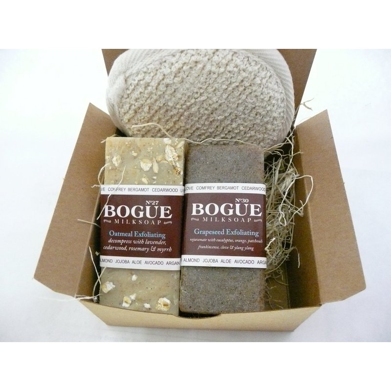 Handmade Goat Milk Soap Exfoliating Bar Gift Set- BOGUE No.27 Oatmeal W Cedarwood, Lavender, Rosemary & Myrrh & No.30 Grapeseed-refresh W Eucalyptus, Clove, Ylang Ylang, & Orange. Loafa Included.