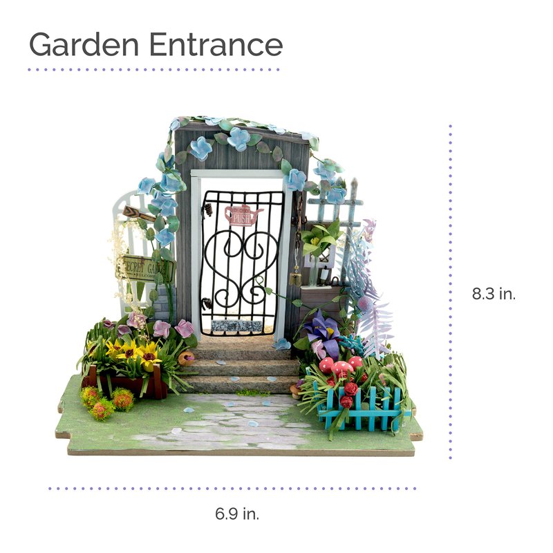 Hands Craft DIY Miniature Dollhouse Kit | 3D Model Craft Kit | Pre Cut Pieces | LED Lights | 1:24 Scale | Adult Teen | Garden Entrance (DGM02)