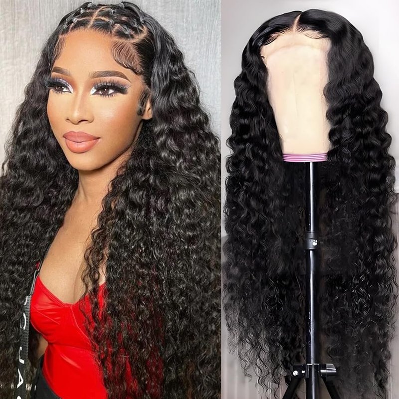 Curly Lace Front Wigs Black Deep Wave Glueless Lace Front Wig for Black Women Heat Resistant Fiber Hair Wigs