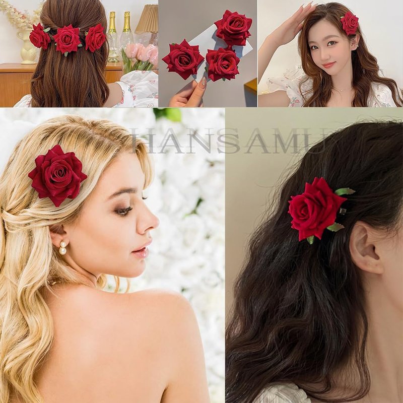 - Fabric Rose Hair Flowers Clips: The red rose is made of fabric, the hairpin and brooch are made of metal. layered durable flower, soft and fashion, non slip and easy to use.