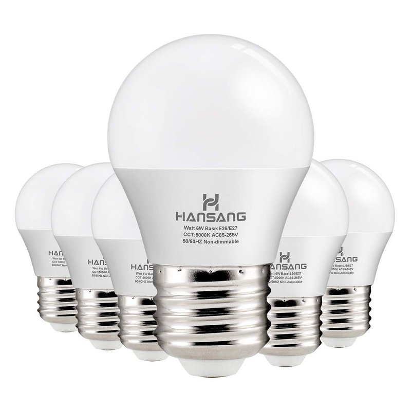hansang A15 LED E26 Small Light Bulb, Daylight 5000K, 60Watt Equivalent Ceiling Fan Light Bulbs, E26 Standard Base Appliance Light Bulb, 600 Lumen, CRI85+, Eye Protection, 120V, Non-Dimmable 6 Pack