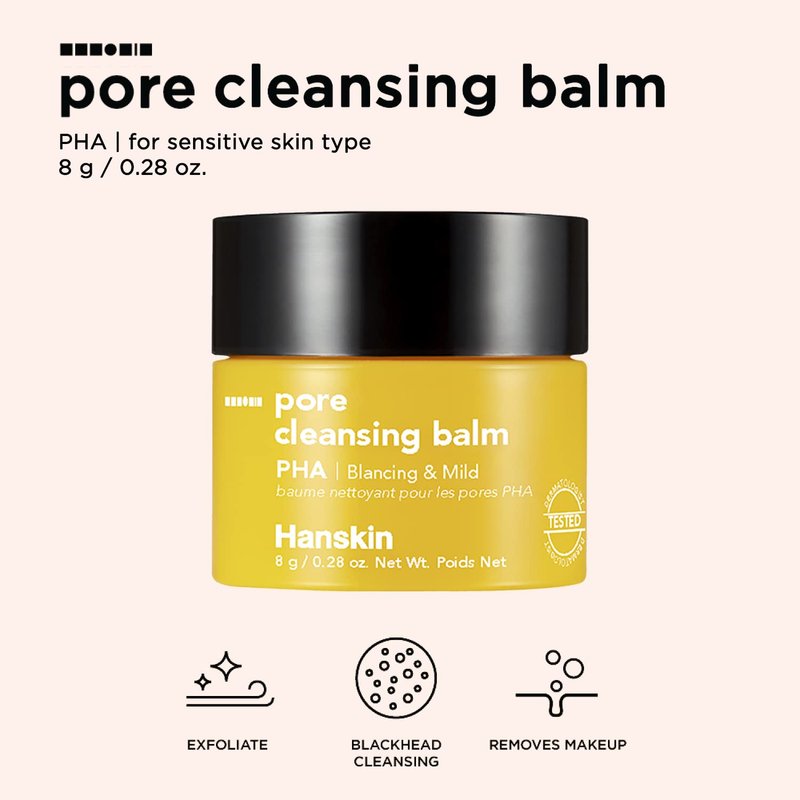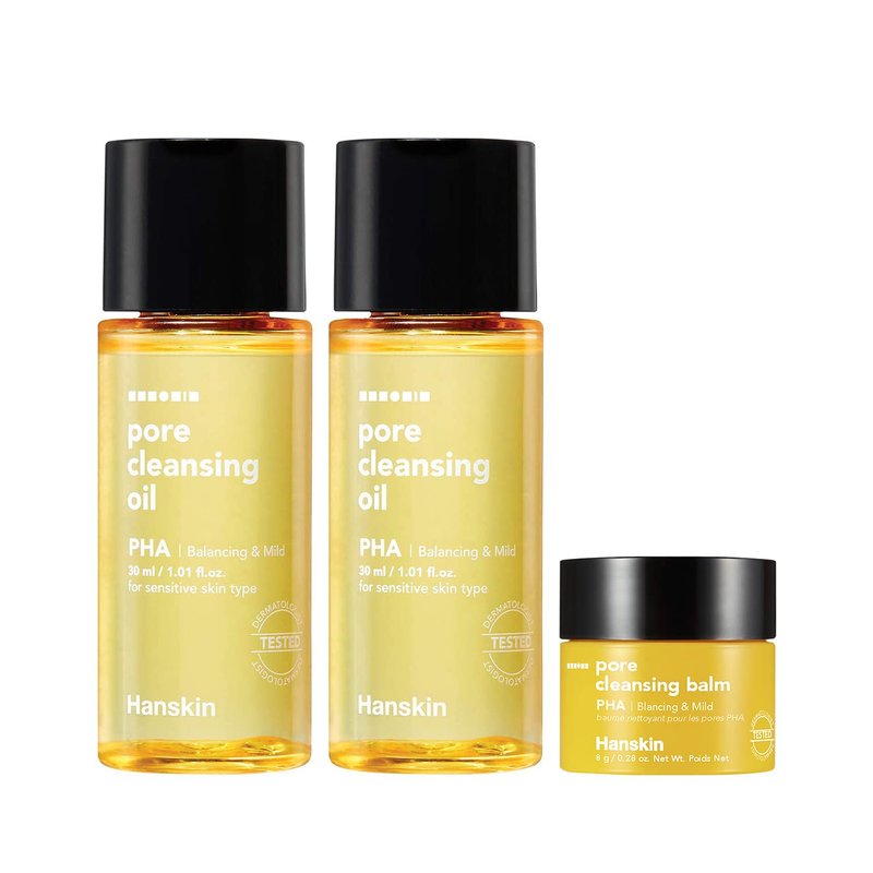 Hanskin PHA Pore Cleansing Oil and PHA Cleansing Balm, Sample Trial Size, Travel Size Mini Makeup Remover Set, Gentle Blackhead Cleanser for Sensitive Skin [30 ml/Pack of 2] + [8g/PHA Balm]