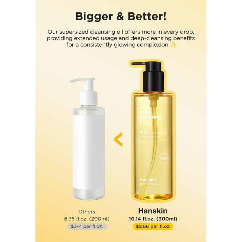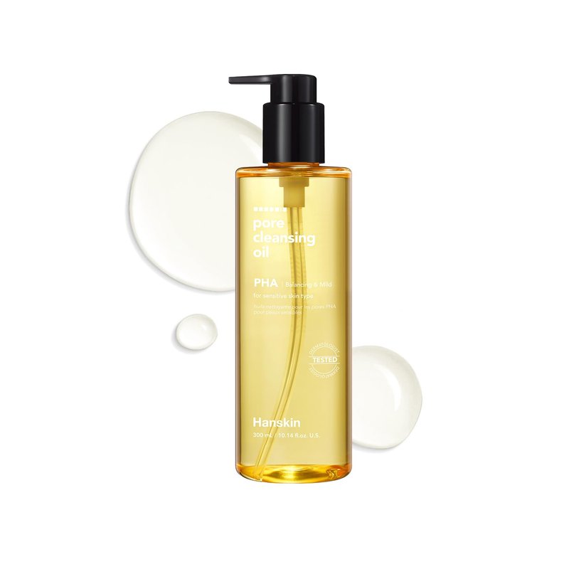 Hanskin Pore Cleansing Oil, Oil Cleanser for Face, Makeup Blackhead Remover, Korean Cleanser for Sensitive Skin [PHA] (10.14 oz)