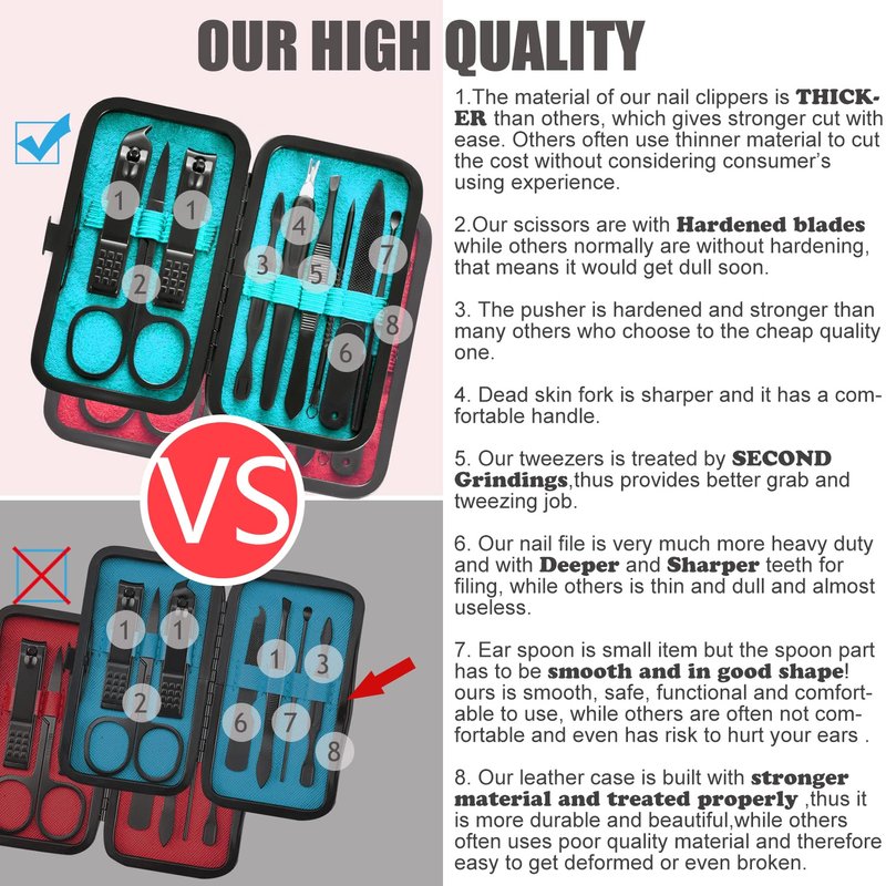 - Crafted By High Quality Stainless Steel: HANTEKAS Manicure and Pedicure tools are made of high quality steel, which is strong and durable, and it is extremely hard and sharp. Designed for lifetime use.